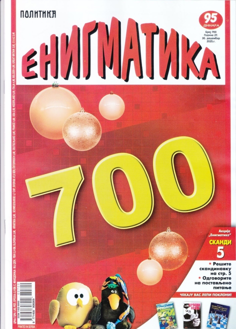 Изашао је јубиларни број 700. листа „Политика ЕНИГМАТИКА“, једна звезда из сазвежђа „Политикине“ куће. У околностима у којима живимо то је свакако вредно честитања.