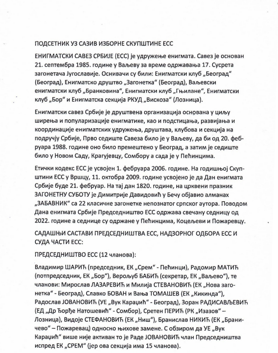 ЕНИГМАТСКИМ КЛУБОВИМА, СЕКЦИЈАМА И ЧЛАНОВИМА ЕНИГМАТСКОГ САВЕЗА СРБИЈЕ,