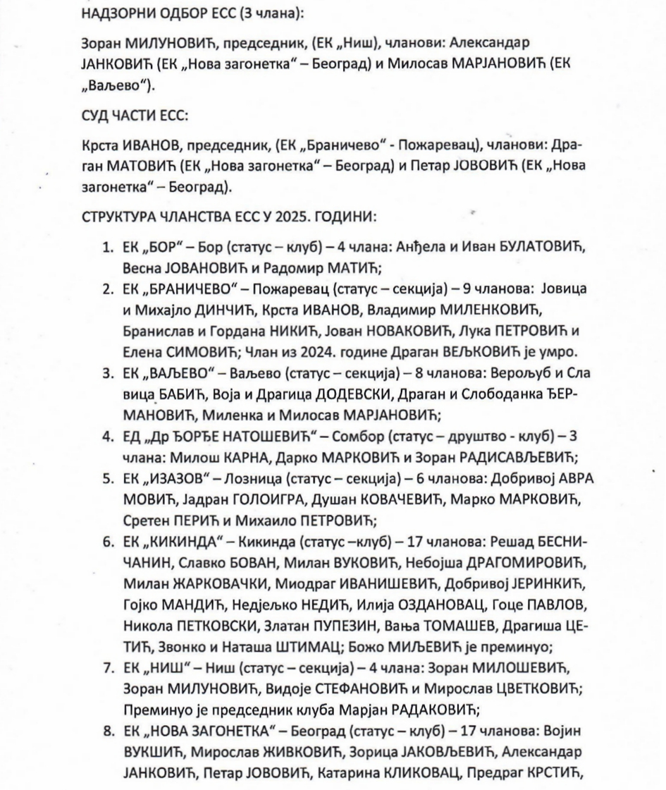 ЕК «БОР» – Бор (статус – клуб) – 7 чланова: БУЛАТОВИЋ Анђела и Иван, ИЛИЋ Љиљана, ЈОВАНОВИЋ Весна, МАТИЋ Радомир, МИЛИВОЈЕВИЋ Милен и СТАНКОВИЋ Бора;